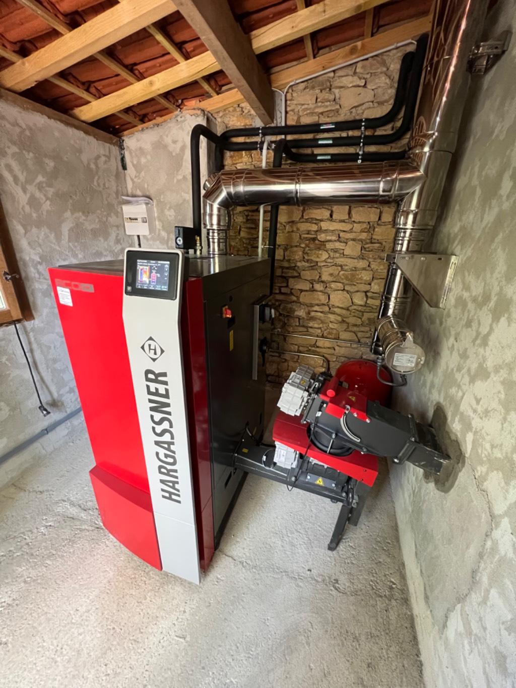 A Carsac Aillac à proximité de Sarlat-la-Canéda en Dordogne (24), nous avons installé une chaudière mixte Hargassner Eco Hk en remplacement d'une vielle chaudière fioul.